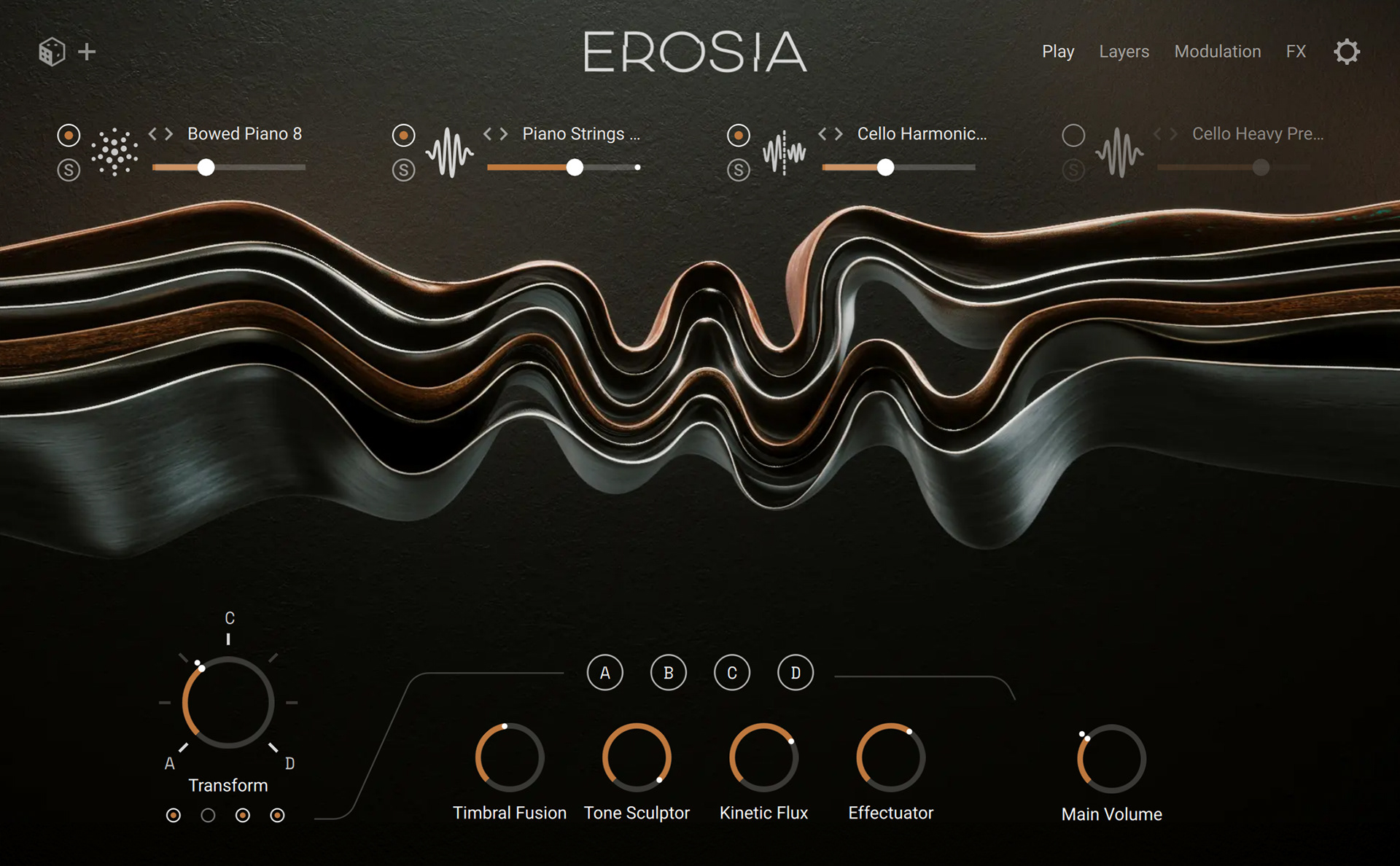 Erosia is a cinematic sound design engine built around unconventional acoustic textures. It captures tiny physical interactions — bowing glass, ice cracking, metal scraping — and expands them into evolving, expressive layers with granular, sampler and wavetable engines. It’s designed for composers and sound designers who want rich, morphing atmospheres rather than conventional pitched instruments.
