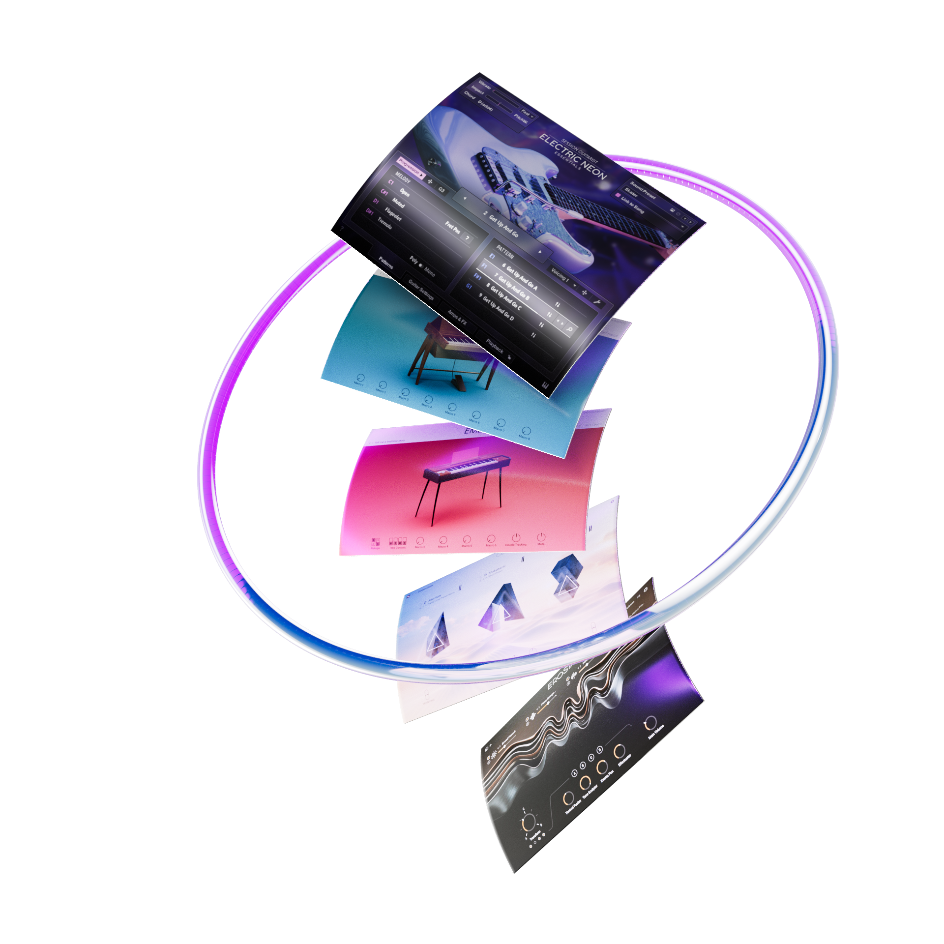 Session Guitarist – Electric Neon Essentials is a virtual electric guitar instrument for Kontakt 8, created for electronic and pop music production. It is based on a custom Strat-style guitar with active pickups and focuses on polished, processed tones rather than traditional, naturalistic guitar realism.